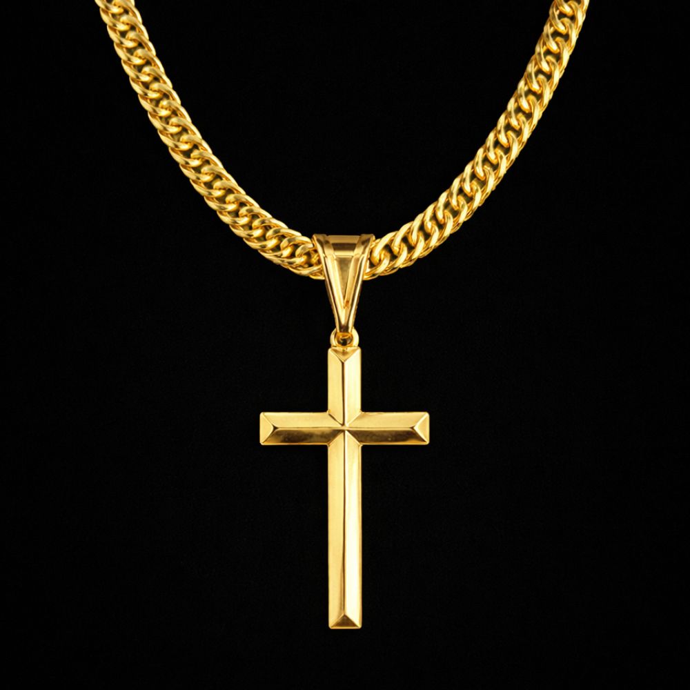 Corrente Grumet Duplo 3mm e Pingente Crucifixo| Banhado a Ouro 18k - Antialérgico